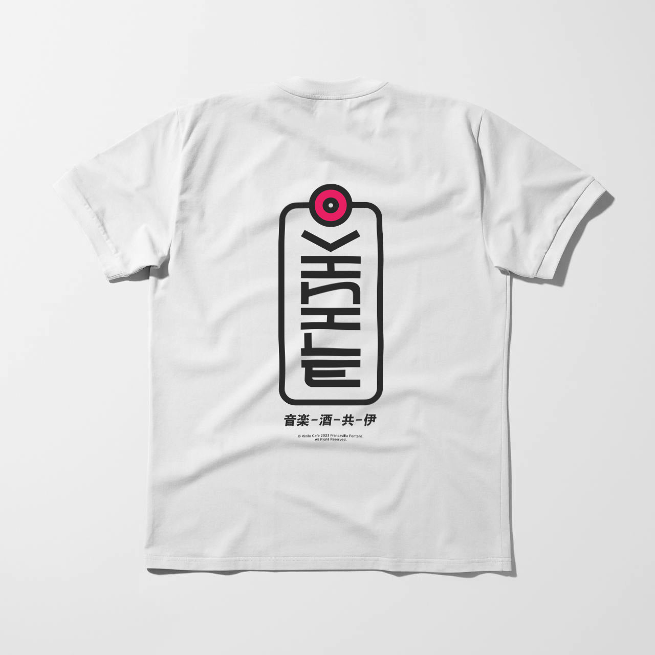 Essenziale e decisa. Questa t-shirt oversize gioca sul contrasto tra minimalismo occidentale e ispirazione orientale. Sul fronte, un dettaglio discreto; sul retro, il simbolo verticale con grafica pulita e un richiamo al vinile come icona universale di musica e cultura.